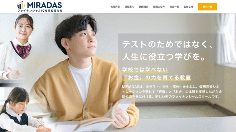 子どもの金融教育を行う「ファイナンシャルスクールミラダス」様のWebサイトを制作しました。教育の信頼性とブランド価値を高めるデザイン設計です。